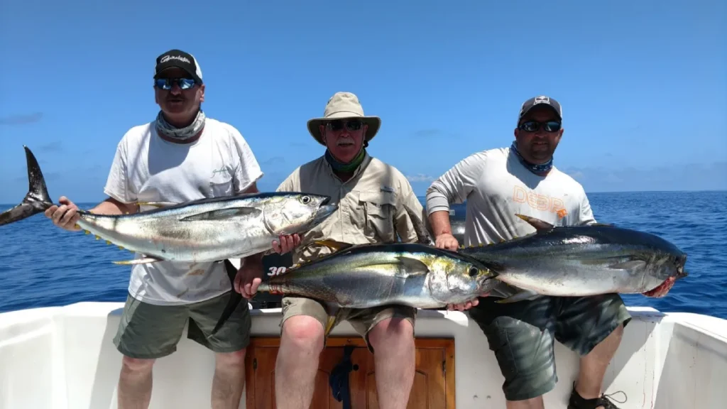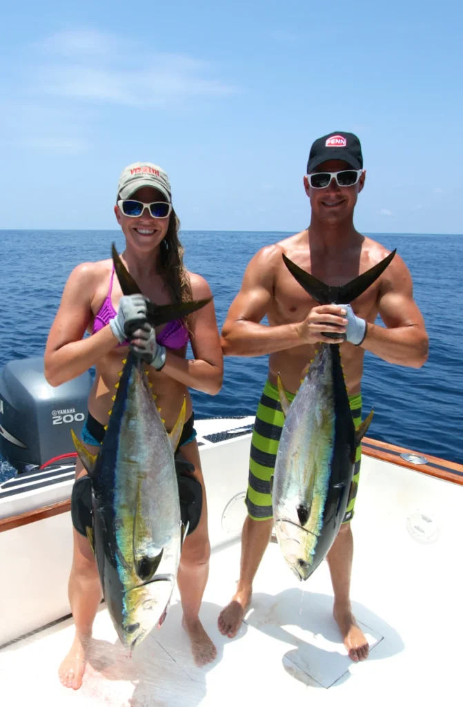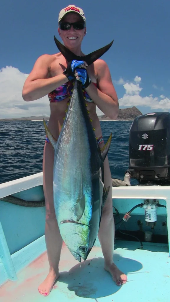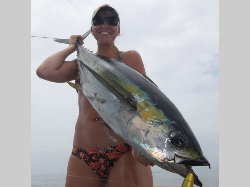 Big yellowfun tuna can be caught all year long and can either be trolled or targeted using popping plugs on spinning tackle. Though fish in the 100lb+ class are common, most of the fish range from 30 to 100lbs.